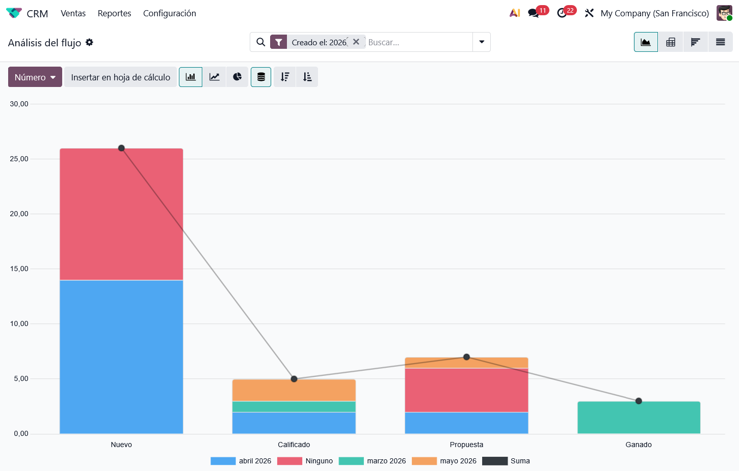 Lo que no se mide, no se puede mejorar. Odoo ofrece informes detallados sobre el rendimiento de tu equipo, la previsión de ingresos y el origen de tus mejores leads. Toma decisiones basadas en datos reales, no en suposiciones.
